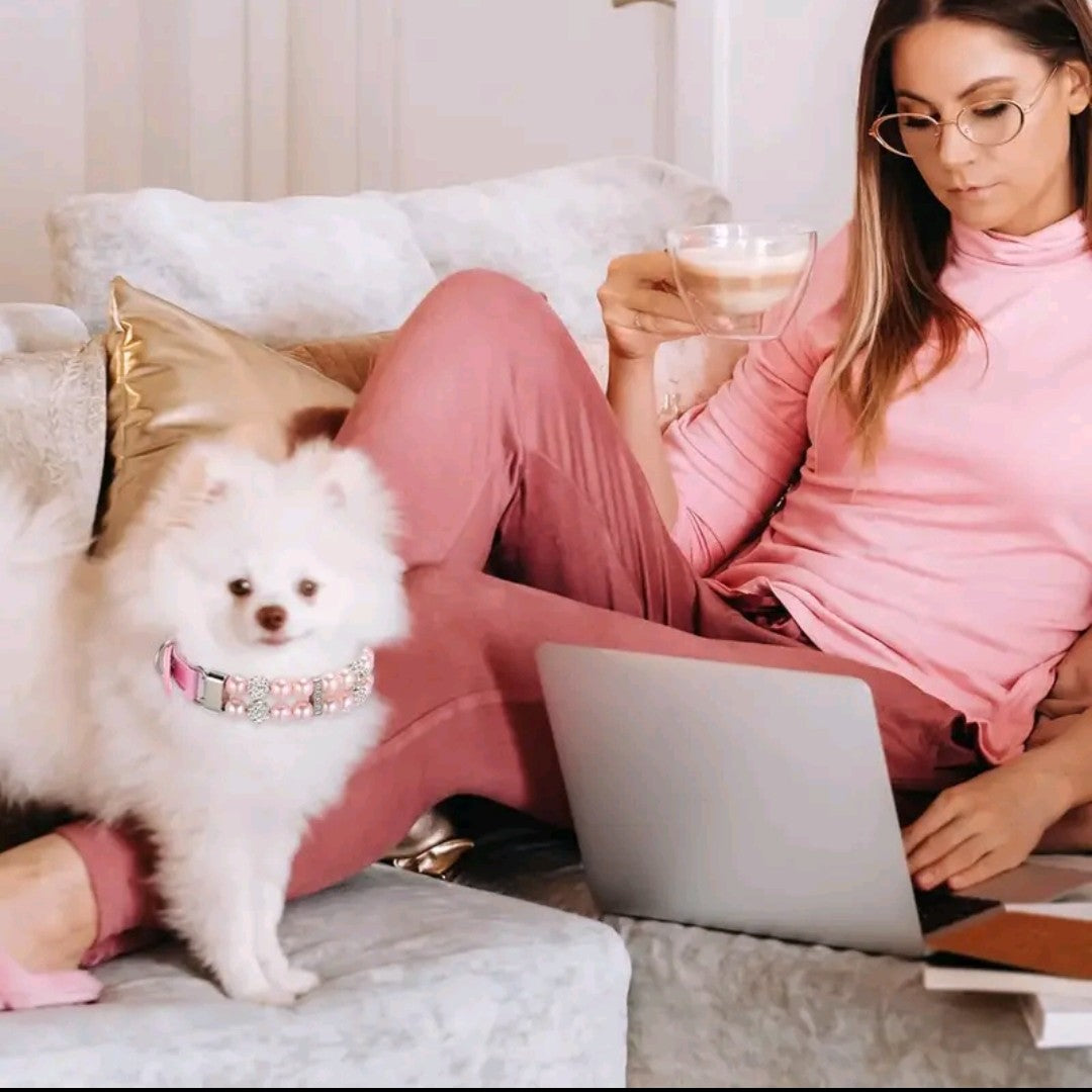 Add a touch of elegance to your pet’s look with this charming 2-piece pearl collar and necklace set! Made with soft PU leather and adorned with shimmering rhinestones, it's perfect for birthdays, weddings, photoshoots, or any special occasion.