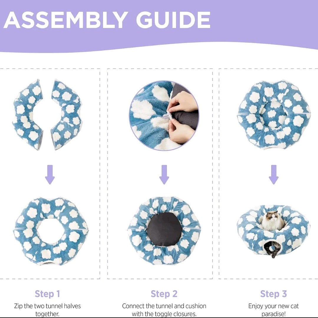 Combine comfort and fun with the Lesure Cat Tunnel Bed! This adorable donut-shaped design features a soft, removable cushion and a cozy circular tunnel—perfect for lounging, hiding, or playful zoomies. Ideal for cats, kittens, small dogs, and rabbits.