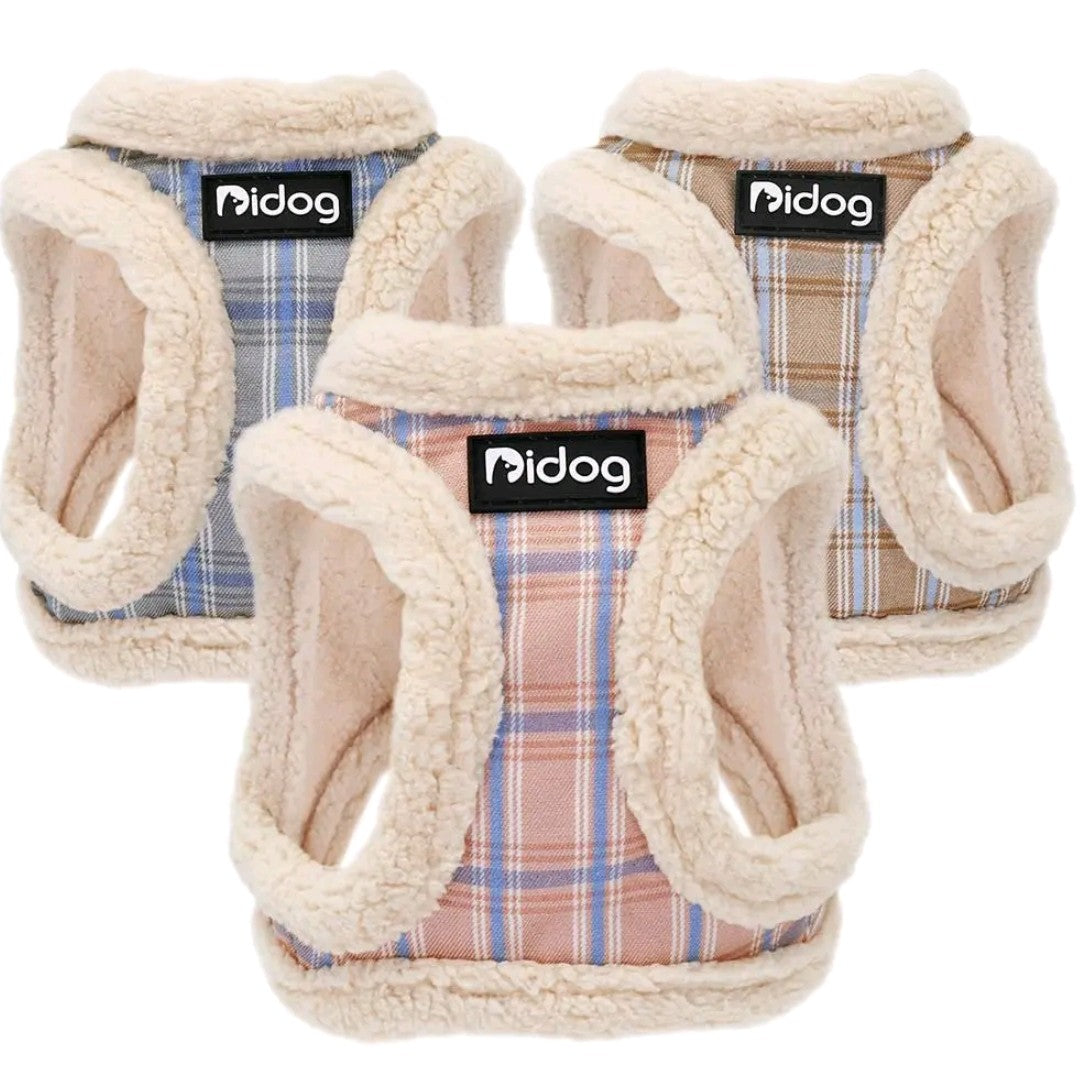 Striped Adjustable Dog Harness & Leash Set – Soft Plush Chest Strap for Dogs & Cats, Cozy Outdoor Pet Harness, Christmas Gift
